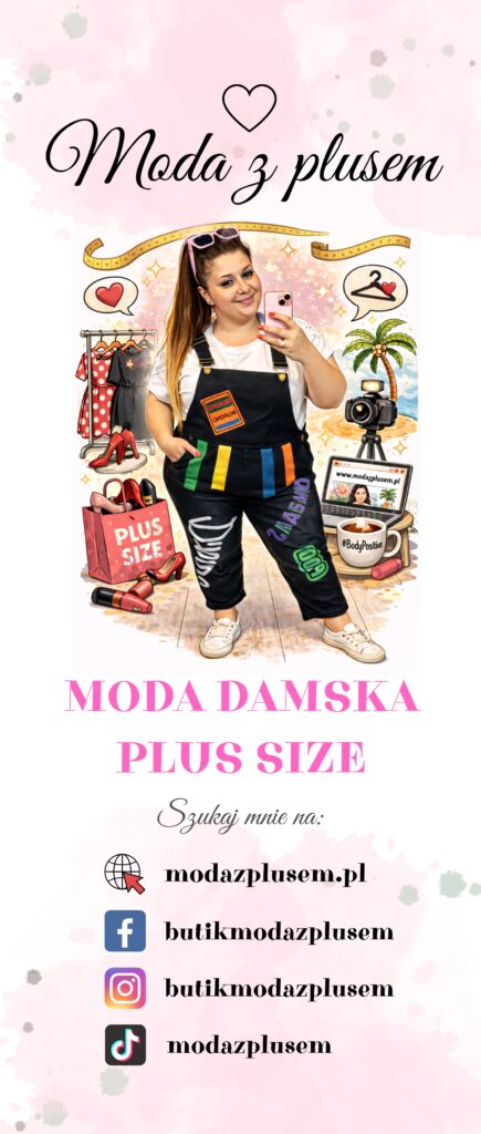 prowadzę firmę MODA Z PLUSEM, w której sprzedaję ubrania damskie. Nie jest to jednak sklep jak każdy inny – owszem, znajdziesz u mnie rozmiary od 38, ale w 95% skupiam się na tych od 44 wzwyż, czyli #PLUS SIZE.