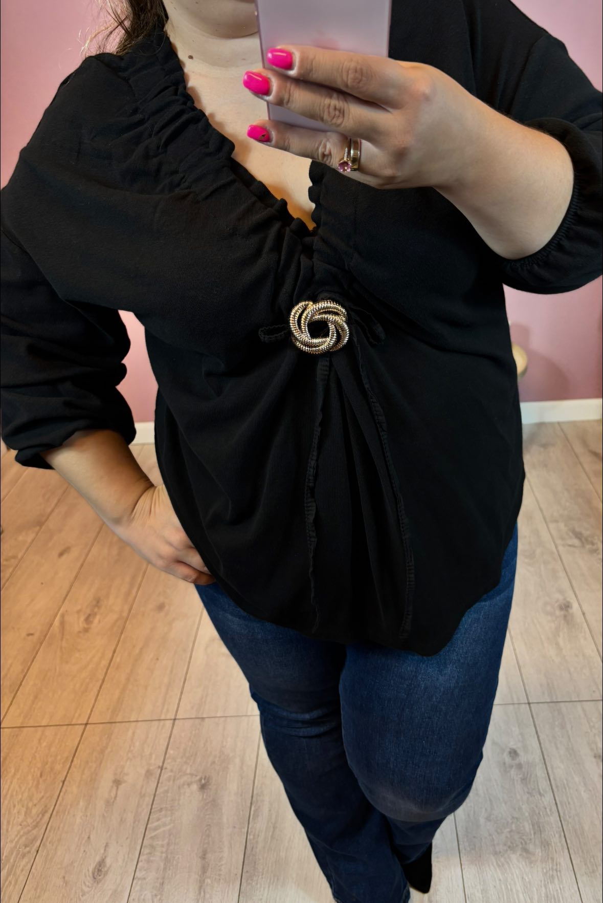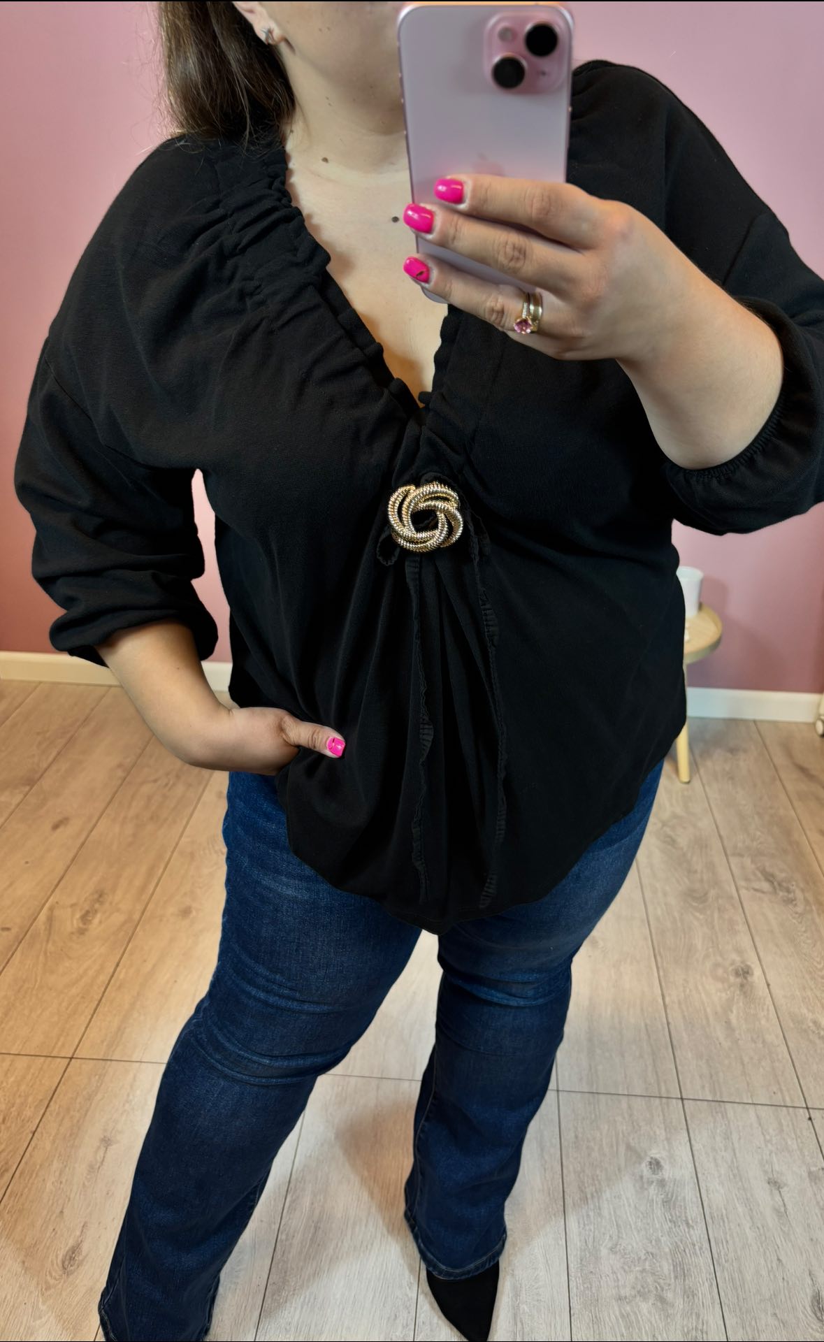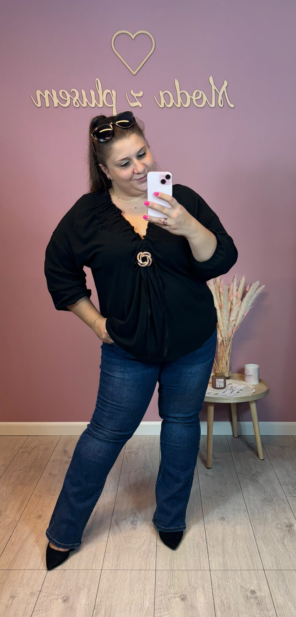 Bluzka od marki Livan’s – miła w dotyku, elegancka, ale na sportowo również można nosić! Złota broszka gratis. Układa się super też na mniejszych rozmiarach. Model oversize.