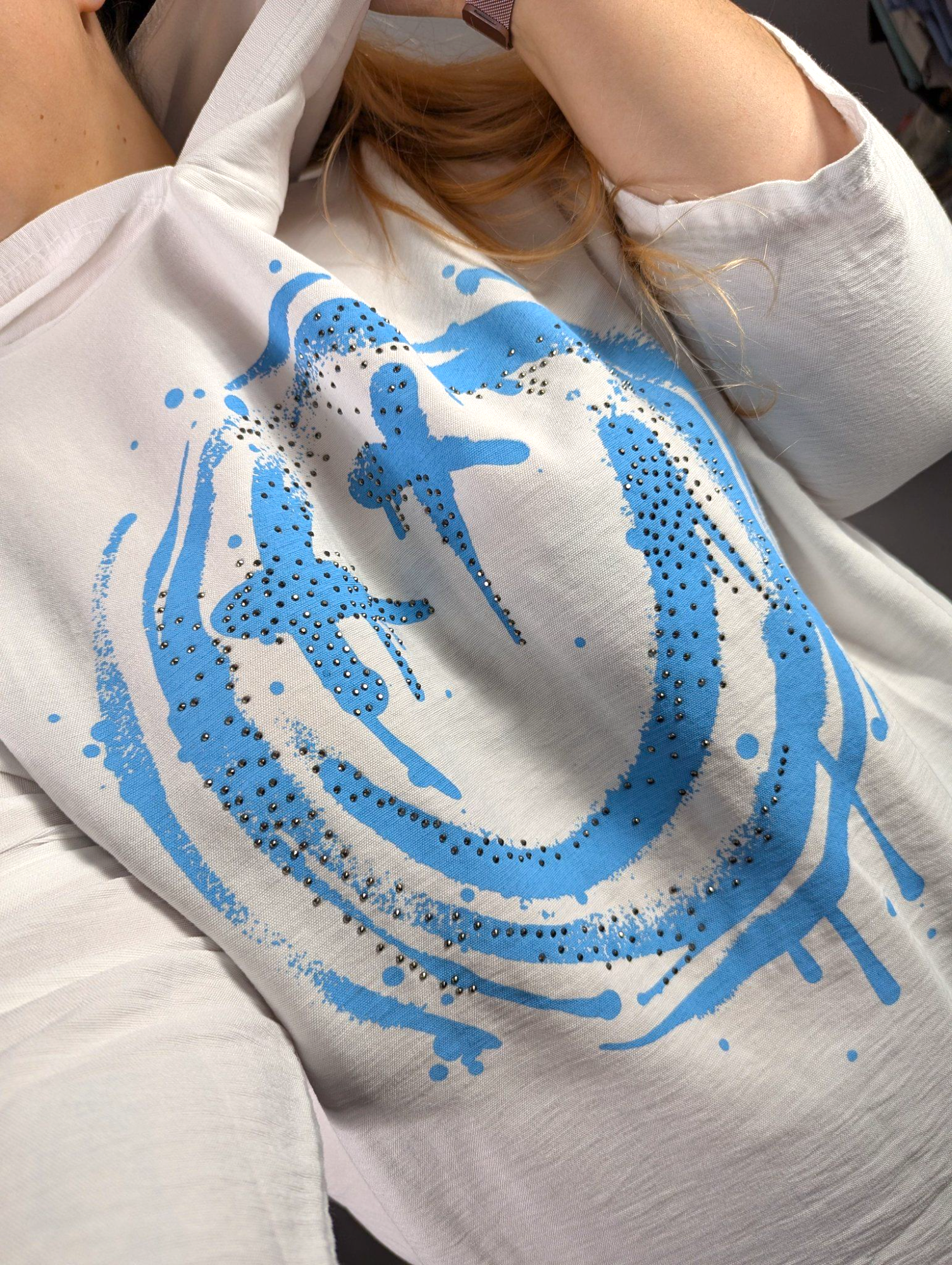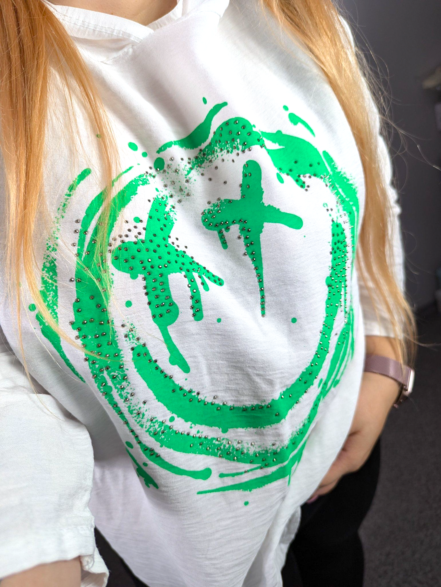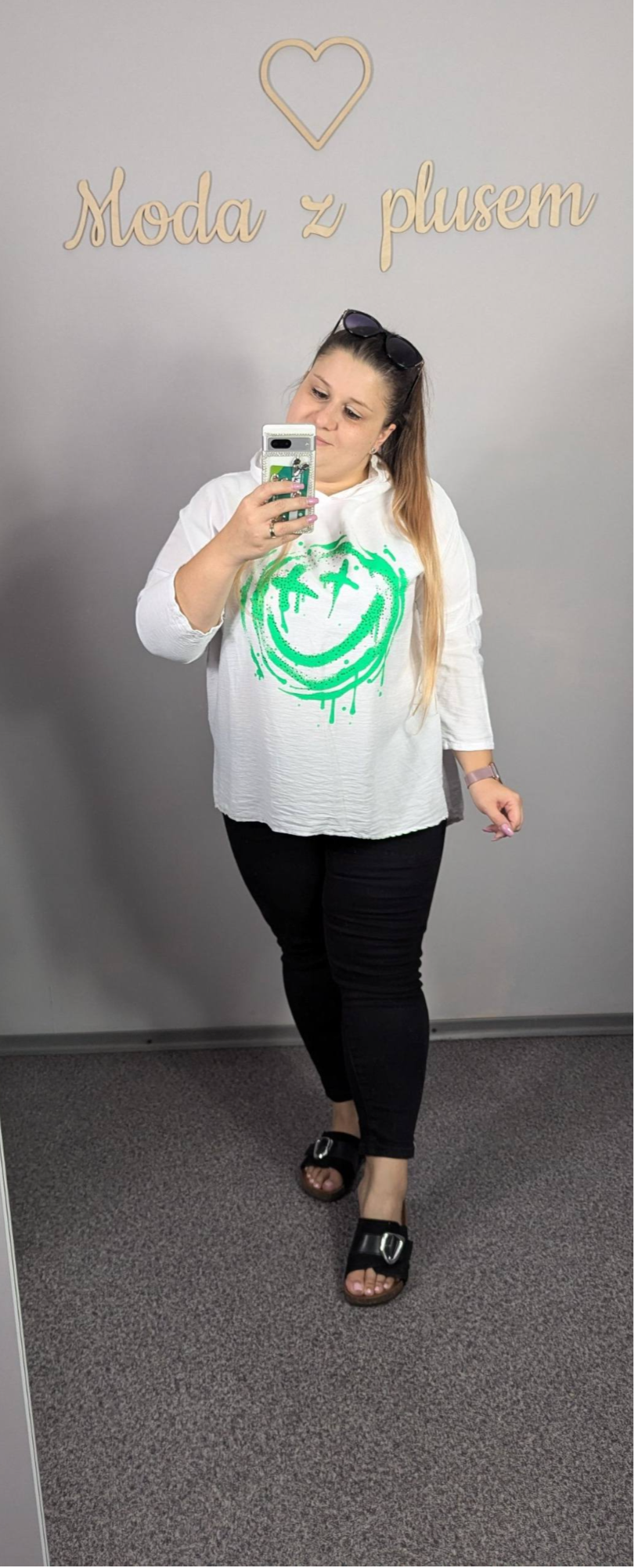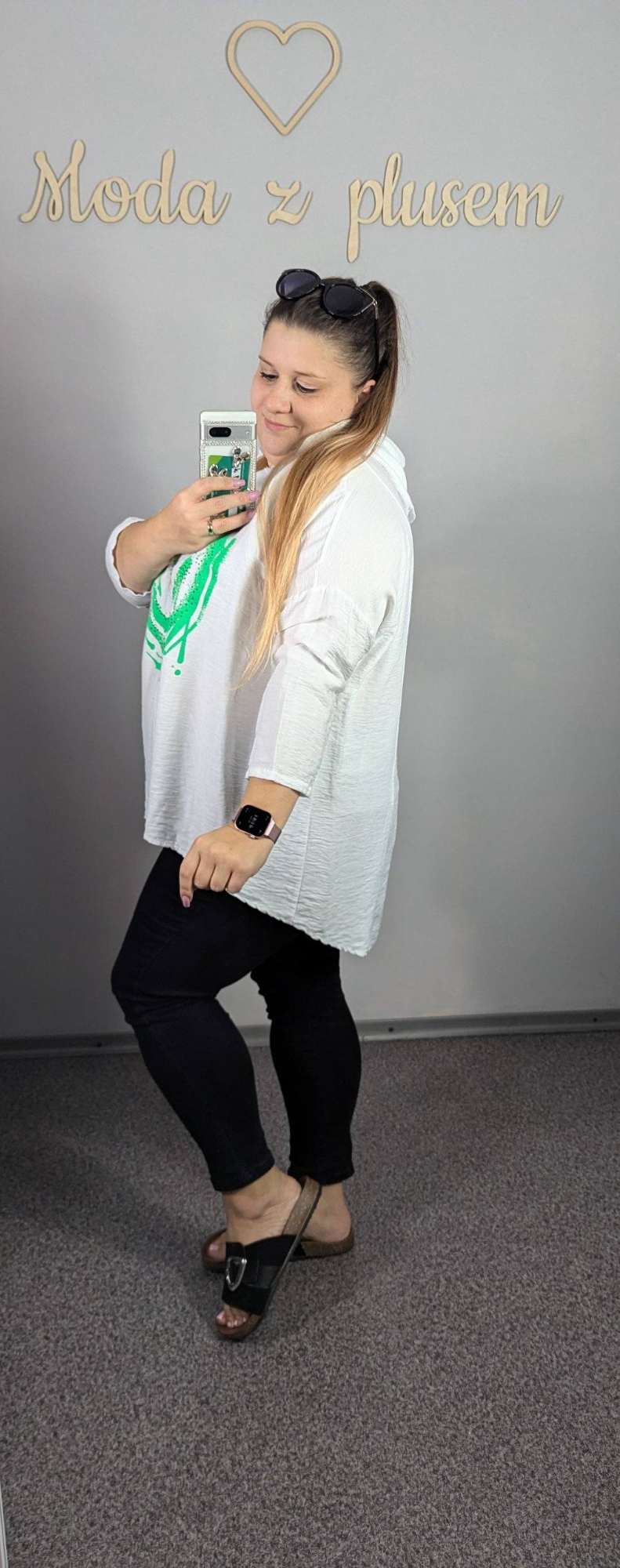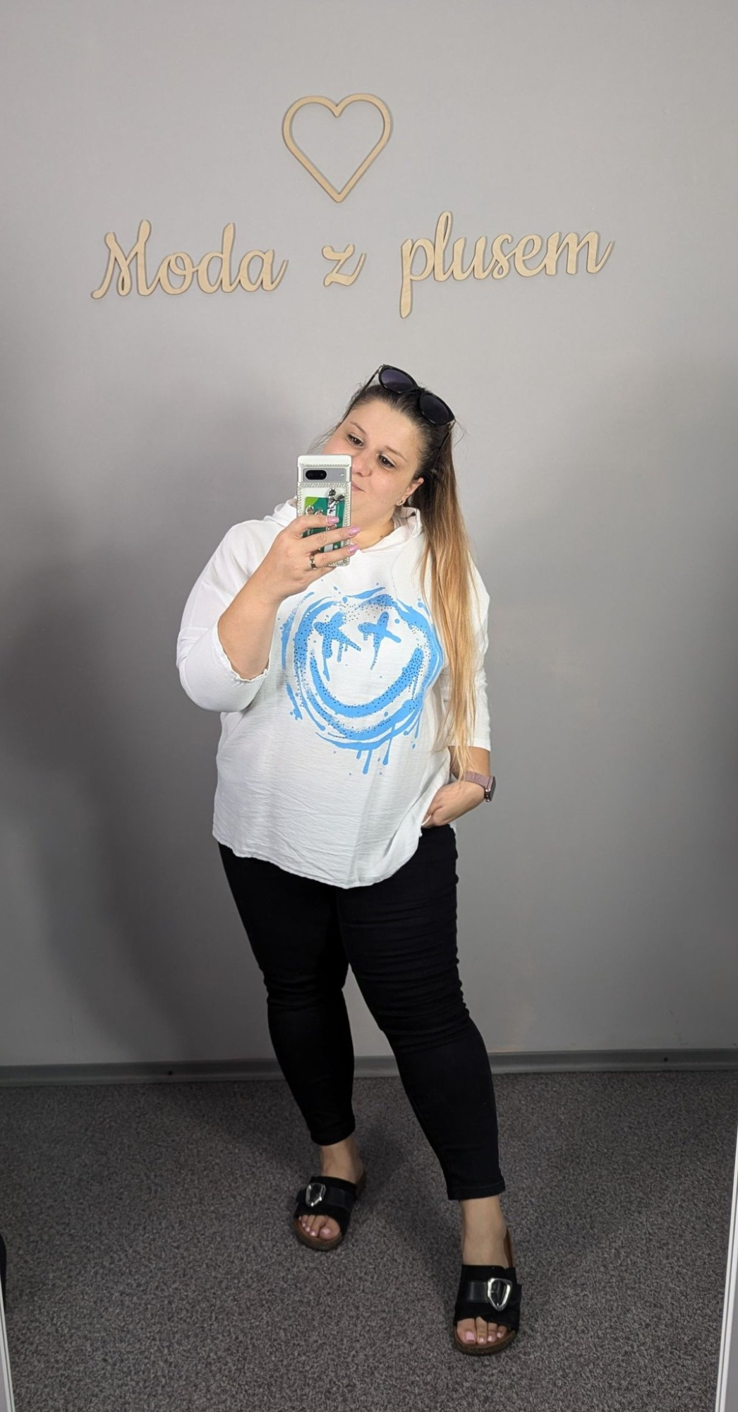 Bluzka z kapturem, na styl oversizowej bluzy. Jest cienka i przewiewna. Posiada kaptur. Rękaw 7/8.