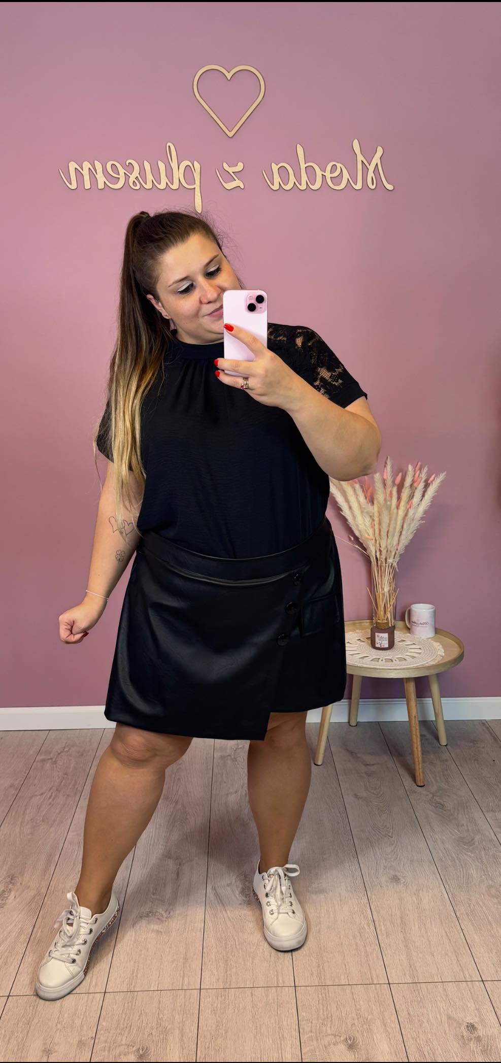 Bluzka z niegniotącego się materiału, z koronką na ramionach. Zapinana z tyłu na guziczek.