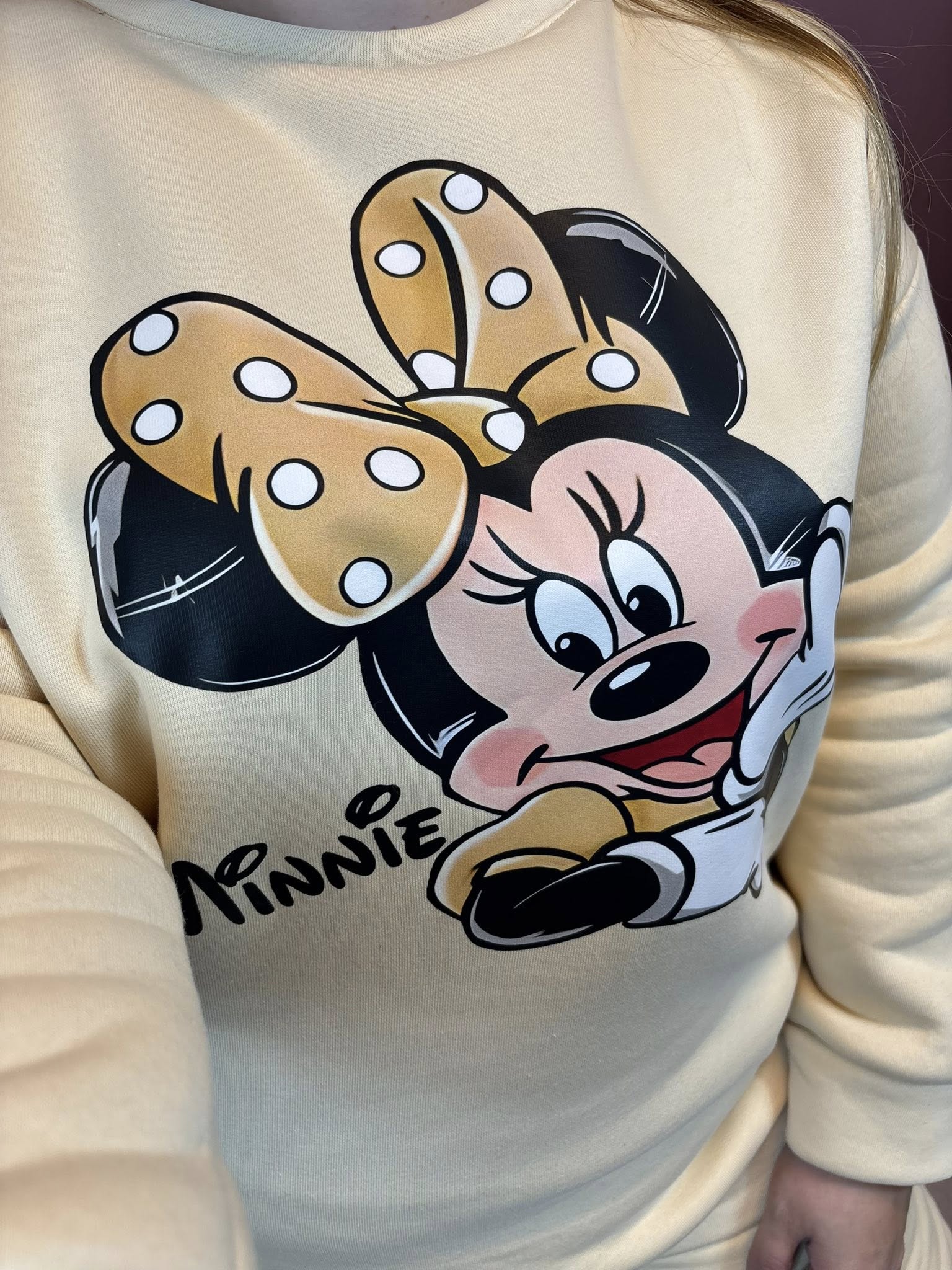 Komplet składa się z bluzy oversize bez kaptura oraz spodni ze ściągaczem. Jest bardzo miły w dotyku, gruby, porządny.