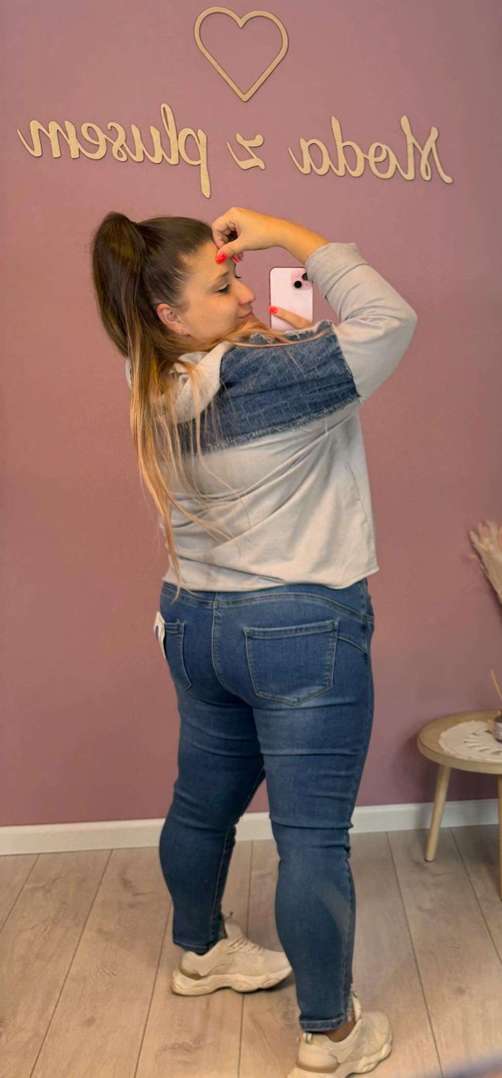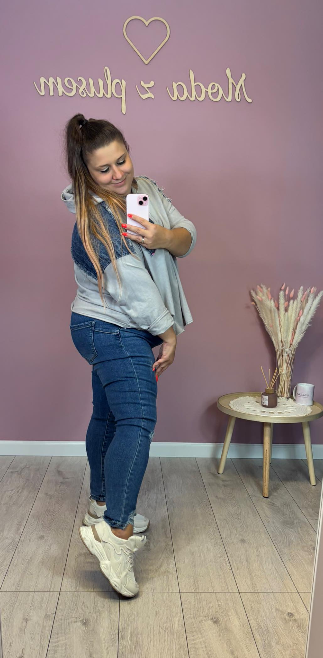 Elastyczne jeansy, z wysokim stanem, w kroju 7/8. Mam na sobie 44 i taki rozmiar noszę na co dzień.