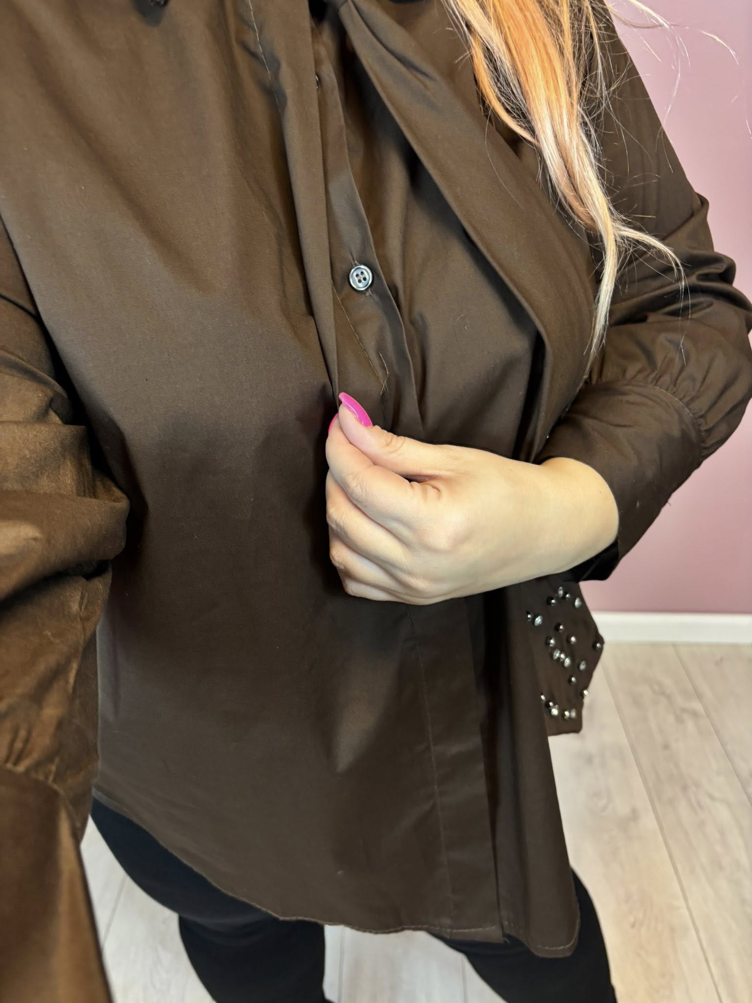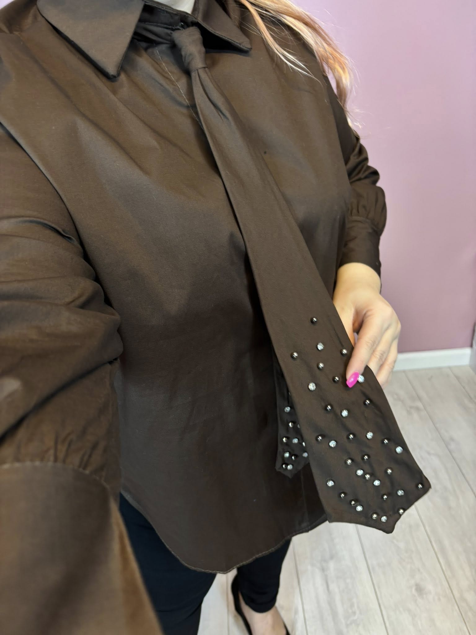 Czekoladowa koszula z krawatem, który można ściągnąć. Model bawełniany, od Zeta Otto.