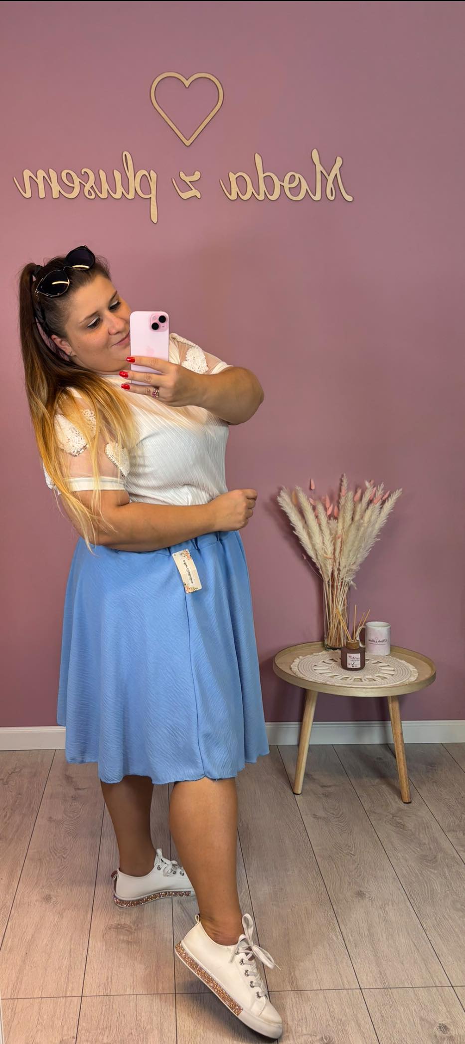 wzrost 155 cm / biust 116 cm / biodra 120 cm / na co dzień nosi rozmiar 44