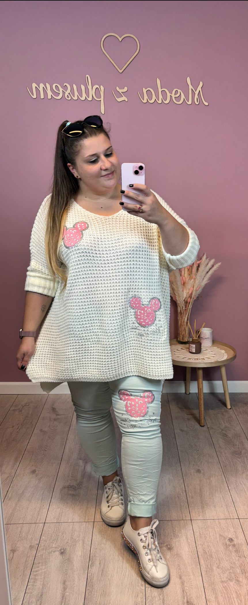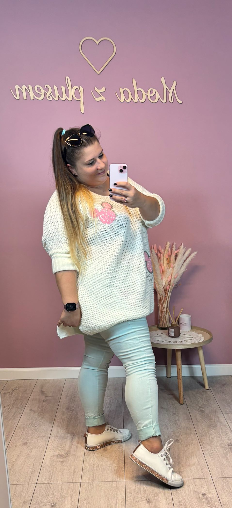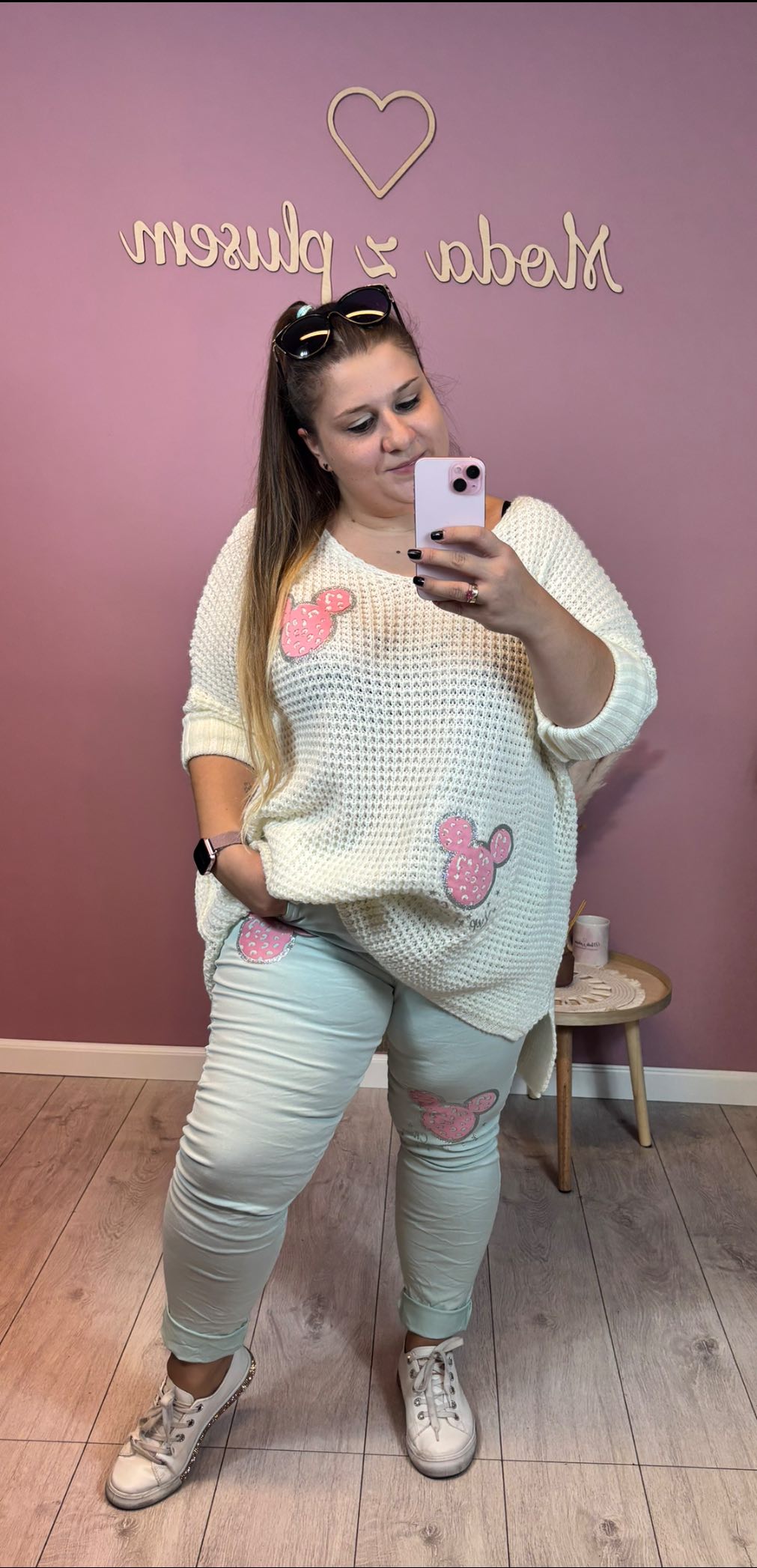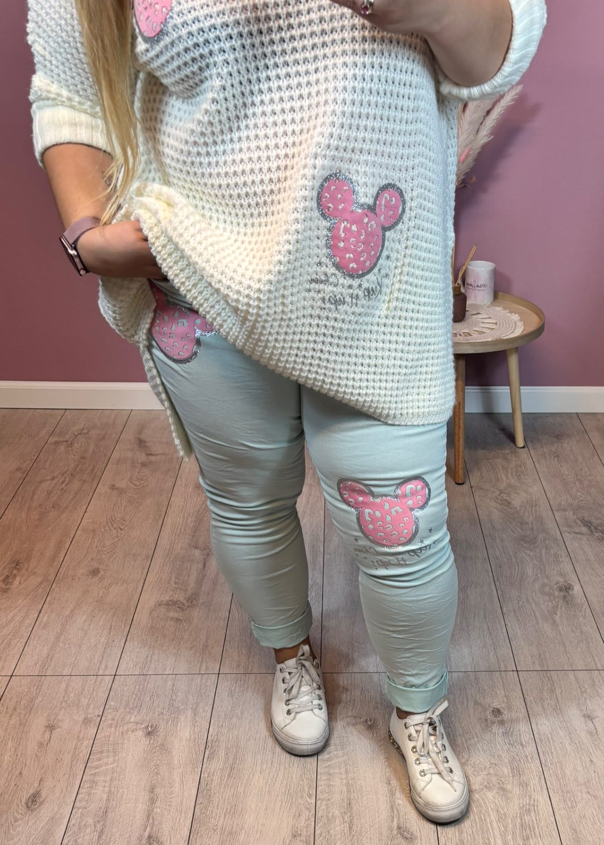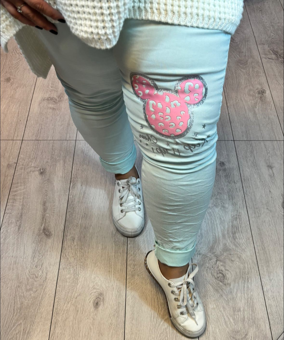 Spodnie gnieciuchy z Mickey. Elastyczne, miękkie, z wyższym stanem. Kolor miętowy.