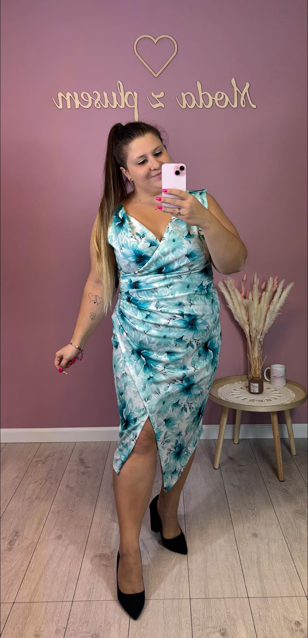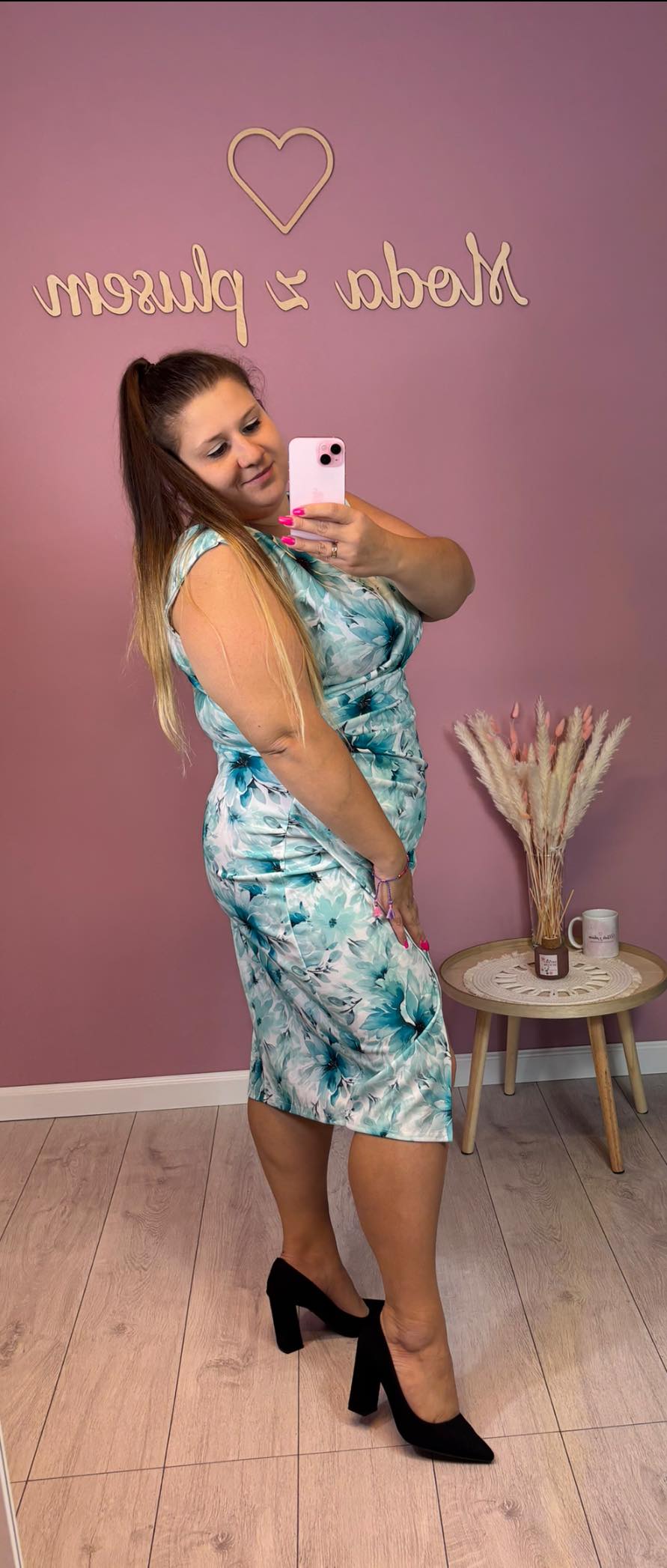 wzrost 155 cm / biust 116 cm / biodra 120 cm / na co dzień nosi rozmiar 44