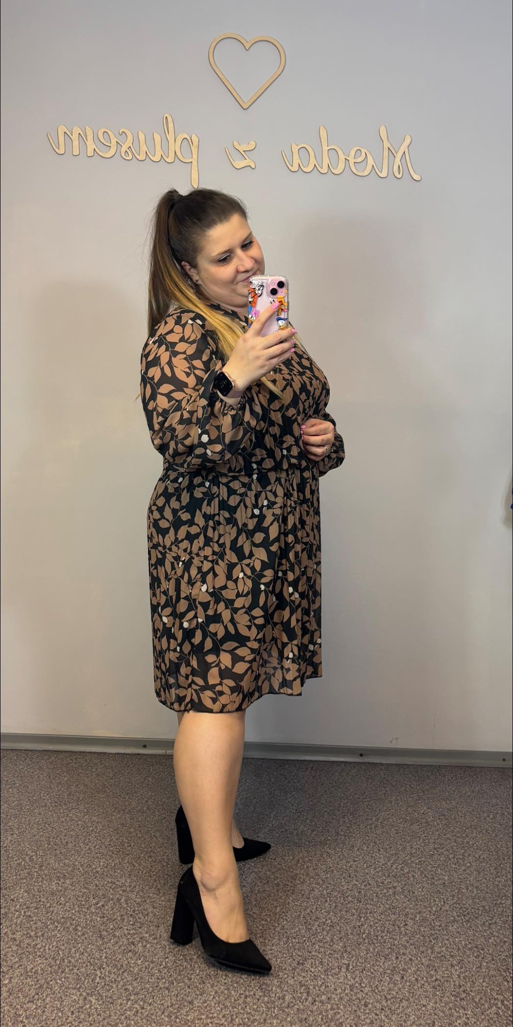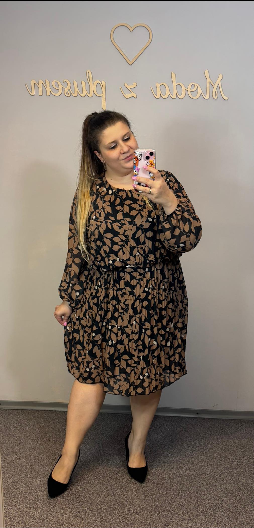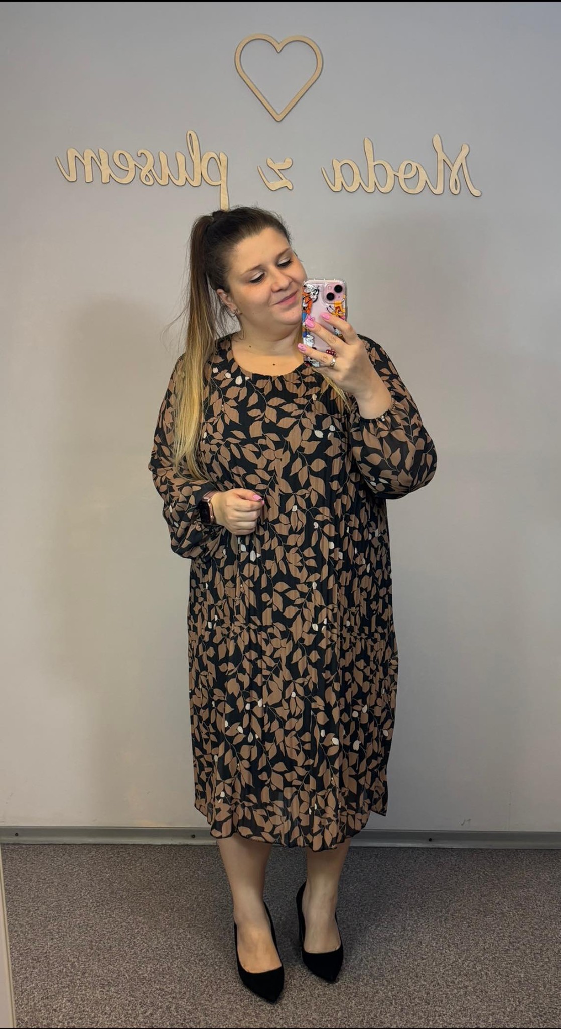 Sukienka plisowana, która świetnie wygląda z paskiem, dzięki niemu też można regulować sobie długość. Pasek NIE jest w komplecie.